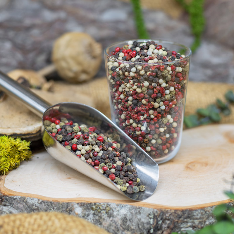Datorită formei sale de boabe întregi, acest condiment menține aroma sa pe o perioadă mai lungă, comparativ cu varianta măcinată. Acest piper este extrem de versatil, putând fi folosit atât întreg, cât și măcinat, în funcție de preferințele și cerințele specifice ale preparatelor culinare. Cu o paletă bogată de arome, acest amestec adaugă profunzime și complexitate preparatelor, fiind recunoscut și apreciat în bucătăriile diverselor culturi.